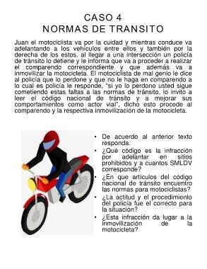 inmovilizar la motocicleta. El motociclista de mal genio le dice