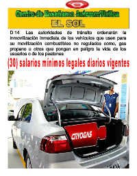 D.14. Las autoridades de tránsito ordenarán la inmovilización inmediata de los vehículos que usen para su movilización combustibles no regulados como, gas propano u otros que pongan en peligro la vida de los usuarios o de los peatones.