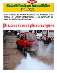 D.17. Cuando se detecte o advierta una infracción a las normas de emisión contaminantes o de generación de ruido por vehículos automotores.