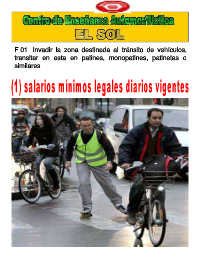 F.01. Invadir la zona destinada al tránsito de vehículos, transitar en esta en patines, monopatines, patinetas o similares.