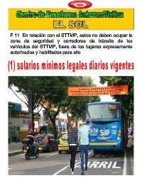 F.11. En relación con el STTMP, estos no deben ocupar la zona de seguridad y corredores de tránsito de los vehículos del STTMP, fuera de los lugares expresamente autorizados y habilitados para ello.