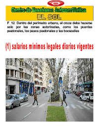 F. 12. Dentro del perímetro urbano, el cruce debe hacerse solo por las zonas autorizadas, como los puentes peatonales, los pasos peatonales y las bocacalles.