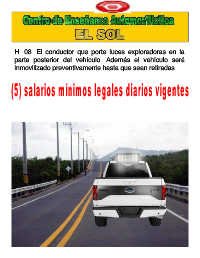 H. 08. El conductor que porte luces exploradoras en la parte posterior del vehículo. Además el vehículo será inmovilizado preventivamente hasta que sean retiradas.