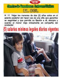H. 11. Viajar los menores de dos (2) años solos en el asiento posterior sin hacer uso de una silla que garantice su seguridad y que permita su fijación a él, siempre y cuando el menor viaje únicamente en compañía del conductor.