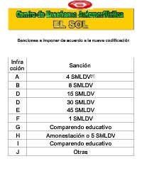 Sanciones a imponer de acuerdo a la nueva codificación Infra Sanción cción A 4 SMLDV (1) B 8 SMLDV D 15 SMLDV D 30 SMLDV E 45 SMLDV F 1 SMLDV G Comparendo educativo H Amonestación o 5 SMLDV I Comparendo educativo J Otras