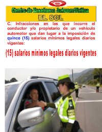 C. Infracciones en las que incurre el conductor y/o propietario de un vehículo automotor que dan lugar a la imposición de quince (15) salarios mínimos legales diarios vigentes: