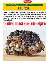 C.27. Conducir un vehículo cuya carga o pasajeros obstruyan la visibilidad del conductor hacia el frente, atrás o costados, o impidan el control sobre el sistema de dirección, frenos o seguridad. Además el vehículo será inmovilizado.