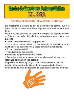 La política de alcohol y drogas, mencionada en este plan de