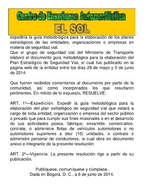 Plan Estratégico de Seguridad Vial, el cual fue publicado en la