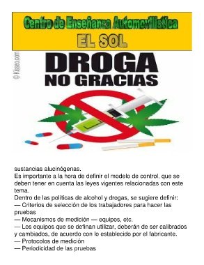 Dentro de las políticas de alcohol y drogas, se sugiere definir:
