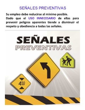 SEÑALES PREVENTIVAS Su empleo debe reducirse al mínimo posible. Dado que el USO INNECESARIO de ellas para prevenir peligros aparentes tiende a disminuir el respeto y obediencia a todas las señales.