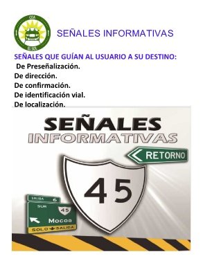 SEÑALES INFORMATIVAS SEÑALES QUE GUÍAN AL USUARIO A SU DESTINO: De Preseñalización. De dirección. De confirmación. De identificación vial. De localización.
