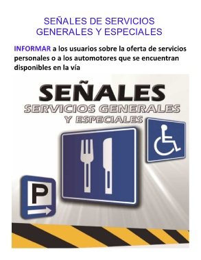 SEÑALES DE SERVICIOS GENERALES Y ESPECIALES INFORMAR a los usuarios sobre la oferta de servicios personales o a los automotores que se encuentran disponibles en la vía