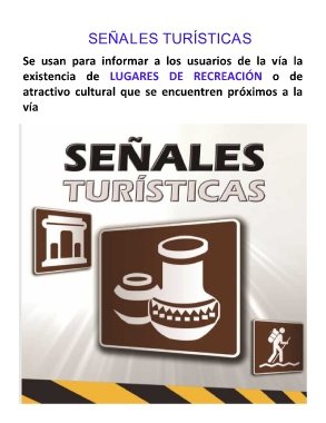 SEÑALES TURÍSTICAS Se usan para informar a los usuarios de la vía la existencia de LUGARES DE RECREACIÓN o de atractivo cultural que se encuentren próximos a la vía