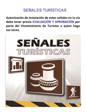 SEÑALES TURÍSTICAS Autorización de instalación de estas señales en la vía debe tener previa EVALUACIÓN Y APROBACIÓN por parte del Viceministerio de Turismo o quien haga sus veces.