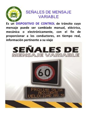 SEÑALES DE MENSAJE VARIABLE Es un DISPOSITIVO DE CONTROL de tránsito cuyo mensaje puede ser cambiado manual, eléctrica, mecánica o electrónicamente, con el fin de proporcionar a los conductores, en tiempo real, información pertinente a su viaje