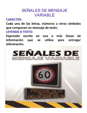 SEÑALES DE MENSAJE VARIABLE CARÁCTER: Cada una de las letras, números u otros símbolos que componen un mensaje de texto. LEYENDA O TEXTO: Expresión escrita en una o más líneas de información que se utiliza para entregar información.