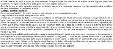 ADVERTENCIA: El bebé al nacer es muy resbaloso. Asegúrese que está ofreciendo el soporte debido. Algunos partos son